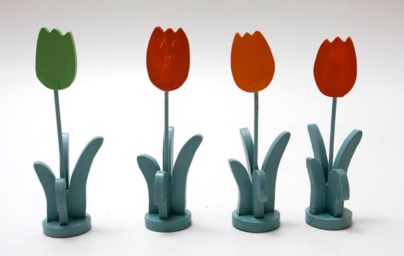 Wood Tulips To Tiptoe Through 2 W Tangerine Petals 1 W Etsy