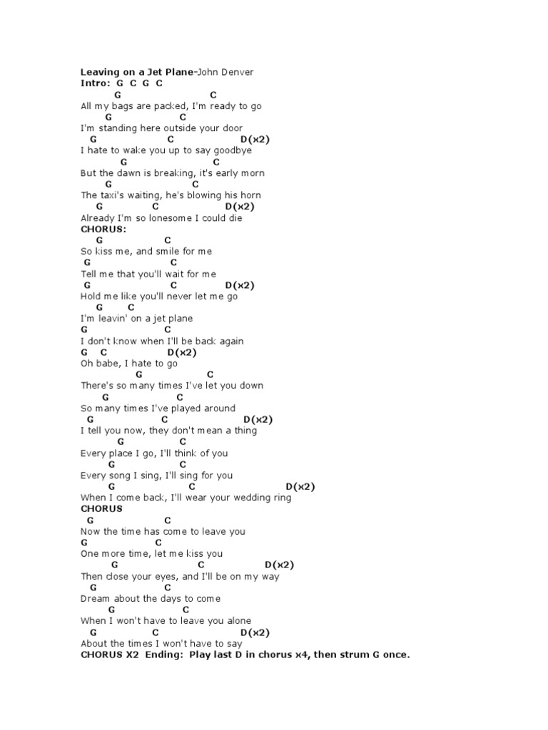 Leaving On A Jet Plane Chords